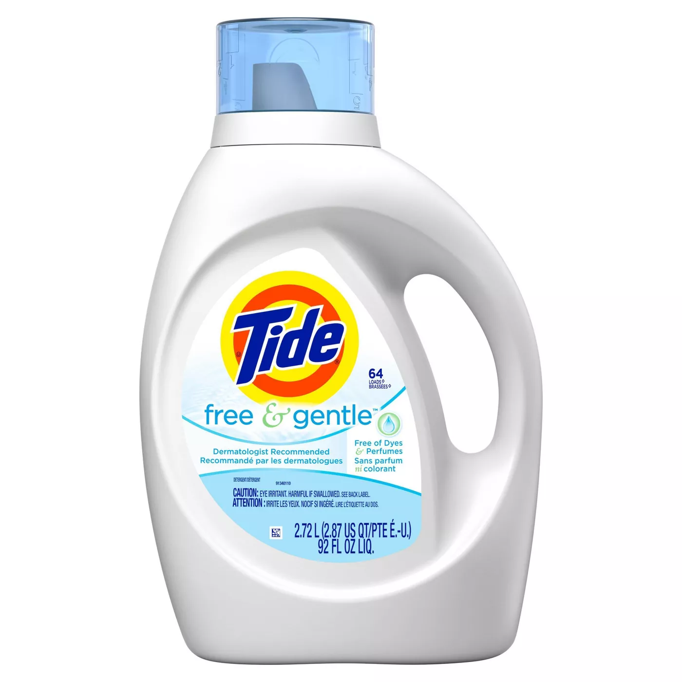 Wash your linen on a gentle cycle with a mild detergent like Tide Free and Gentle Liquid Laundry Detergent.